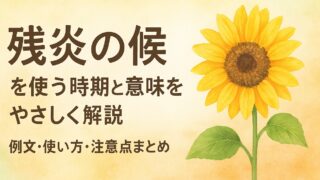 🌻残炎の候を使う時期と意味をやさしく解説|例文・使い方・注意点まとめ🌸はじめに|「残炎の候」ってどんなときに使うの?ビジネスメールや手紙で見かける「残炎の候(ざんえんのこう)」。聞いたことはあるけれど、「いつ使えばいいの?」「どんな意味?」...