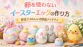 卵を使わないイースターエッグの作り方|安全でかわいい代用品アイデアまとめはじめに|卵を使わないイースターエッグってどんなもの?イースターといえば、カラフルに飾られた「イースターエッグ」を思い浮かべる方も多いですよね。でも最近は、 卵アレルギ...